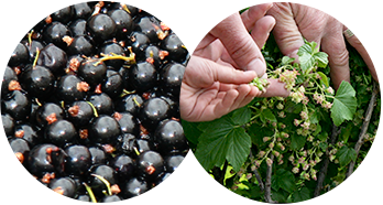 Blackcurrant ブラックカラントは、日本ではあまり知られていない名前です。和名の“クロスグリ”といってもピンときません。仏名の“カシス”といえば、ご存知の方が多いと思います。しかし、その実体はよくわかっていないというのが現状ではないでしょうか。ブラックカラントは、高さ1.5メートルほどの植物で、濃紫色の食用の実を付けます。中世のヨーロッパ、特にイギリスやドイツ、フランスあたりでは、家の庭にブラックカラントを植え、風邪をひいた時などにその実を摘んで、薬草として利用してきたという歴史があります。近年、民間医療などでよく用いられるハーブの成分が研究されるようになり、ブラックカラントにも、抗酸化物質としてのアントシアニン、栄養素のビタミン、ミネラルなどが豊富に含まれていることが明らかになっています。